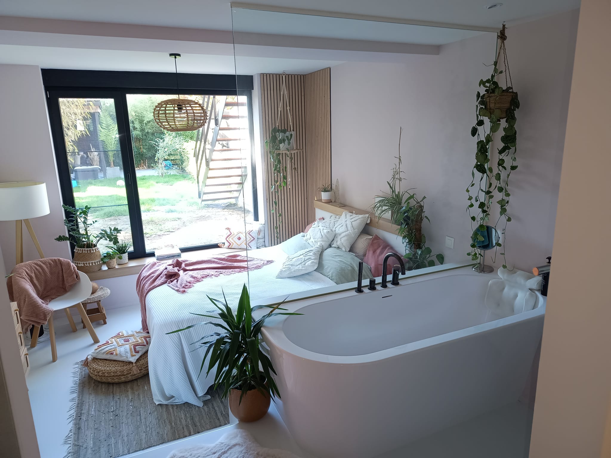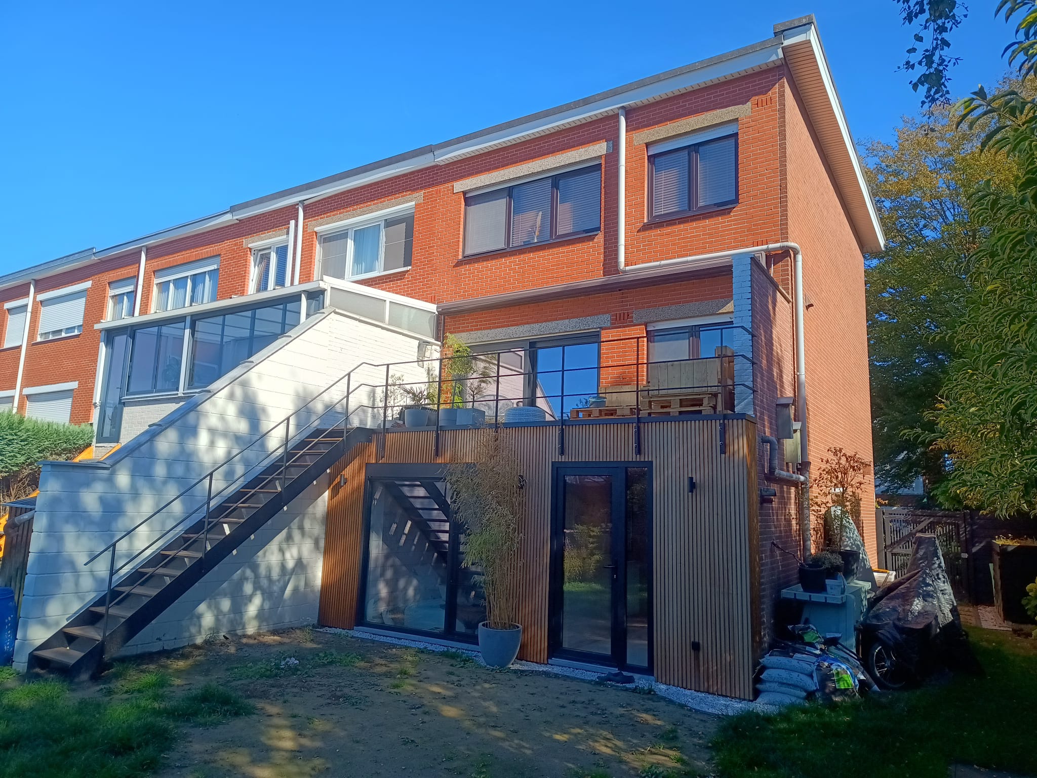 Bij een bel-etagewoning werd de gelijkvloerse garage aan de achterzijde getransformeerd tot een comfortabele slaapkamer met slaapkuil, en-suite badkamer en inloopkast. Tegelijk met deze ingreep werd de volledige bouwlaag grondig geïsoleerd en is de riolering vernieuwd. Ook het dakterras kreeg een upgrade, met een nieuwe privacymuur en een aangrenzende buitentrap als praktische toevoeging.